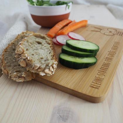 Ein Jausenbrett für die Kleinen, mit dem jede Jause schmeckt … sogar das Gemüse (Angaben ohne Gewähr) Das Brett ist aus Bambusholz und somit ein nachhaltiges Produkt, plastikfrei und natürlich auch personalisierbar. - Maße: 220x14x10 mm - Material: Bambusholz - Personalisierbar mit - Name/Geburtsdatum/… - Der Schriftzug bzw. das Symbol wird auf das Jausenbrett graviert. - Das Jausenbrett ist NICHT für den Geschirrspüler bzw. für die Mikrowelle geeignet - Leichte Abweichungen zur Maserung, Farbe bzw. Gravurintensität sind naturbedingt und stellen keinen Reklamationsgrund dar. - Bitte beachte die angefügten bzw. beigelegten Pflegehinweise – damit du länger Freude mit deinem Jausenbrett hast. PFLEGEHINWEISE Bitte gib das Jausenbrett NICHT in den Geschirrspüler bzw. in die Mikrowelle. Für die Reinigung genügen Schwamm oder Haushaltstuch und Wasser. Bei stärkerer Verschmutzung einfach ein wenig Spülmittel nehmen, bitte sparsam einsetzen, da dieses zu einem schnelleren Abnutzen der Beschichtung beiträgt. Bitte trockne das Brett nach dem Reinigen gut ab, bzw. lass es stehend trocknen, damit beide Seiten gleichmäßig belüftet werden.