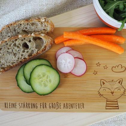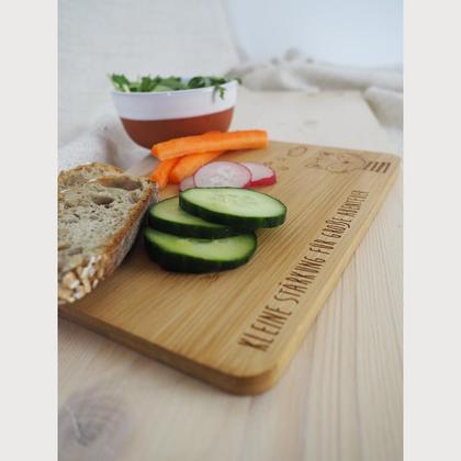 Ein Jausenbrett für die Kleinen, mit dem jede Jause schmeckt … sogar das Gemüse (Angaben ohne Gewähr) Das Brett ist aus Bambusholz und somit ein nachhaltiges Produkt, plastikfrei und natürlich auch personalisierbar. - Maße: 220x14x10 mm - Material: Bambusholz - Personalisierbar mit - Name/Geburtsdatum/… - Der Schriftzug bzw. das Symbol wird auf das Jausenbrett graviert. - Das Jausenbrett ist NICHT für den Geschirrspüler bzw. für die Mikrowelle geeignet - Leichte Abweichungen zur Maserung, Farbe bzw. Gravurintensität sind naturbedingt und stellen keinen Reklamationsgrund dar. - Bitte beachte die angefügten bzw. beigelegten Pflegehinweise – damit du länger Freude mit deinem Jausenbrett hast. PFLEGEHINWEISE Bitte gib das Jausenbrett NICHT in den Geschirrspüler bzw. in die Mikrowelle. Für die Reinigung genügen Schwamm oder Haushaltstuch und Wasser. Bei stärkerer Verschmutzung einfach ein wenig Spülmittel nehmen, bitte sparsam einsetzen, da dieses zu einem schnelleren Abnutzen der Beschichtung beiträgt. Bitte trockne das Brett nach dem Reinigen gut ab, bzw. lass es stehend trocknen, damit beide Seiten gleichmäßig belüftet werden.