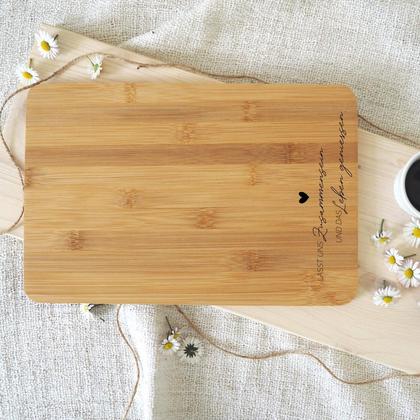 Lasst uns zusammensein und das Leben genießen - Kuchenbrett So wir jeder Kuchen mit einer besonderen Botschaft überreich. Das Brett ist aus Bambusholz und somit ein nachhaltiges Produkt und plastikfrei. - Maße: 300x200x10 mm - Material: Bambusholz - Der Schriftzug bzw. der Text wird auf das Kuchenbrett graviert. - Das Brett ist NICHT für den Geschirrspüler bzw. für die Mikrowelle geeignet - Leichte Abweichungen zur Maserung, Farbe bzw. Gravurintensität sind naturbedingt und stellen keinen Reklamationsgrund dar. - Bitte beachte die angefügten bzw. beigelegten Pflegehinweise – damit du länger Freude mit deinem Brett hast. PFLEGEHINWEISE: Bitte gib das Kuchenbrett NICHT in den Geschirrspüler bzw. in die Mikrowelle. Für die Reinigung genügen Schwamm oder Haushaltstuch und Wasser. Bei stärkerer Verschmutzung einfach ein wenig Spülmittel nehmen, bitte sparsam einsetzen, da dieses zu einem schnelleren Abnutzen der Beschichtung beiträgt. Bitte trockne das Brett nach dem Reinigen gut ab, bzw. lass es stehend trocknen, damit beide Seiten gleichmäßig belüftet werden.