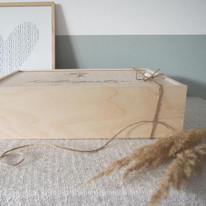 SAMMELBOX FÜR DIE SCHÖNSTEN KINDERGARTEN-KUNSTWERKE In dieser Box werden ganz besondere Basteleien und Kunstwerke der Kindergartentage gesammelt und schön im Kinderzimmer aufgehoben. So können sich die Kleinen auch wenn sie groß sind immer wieder an die besondere Kindergartenzeit erinnern. - Maße: ca. 36x24x10cm - Rahmen und Boden geleimt und genagelt - Deckel mit Ausziehleiste versehen - aus Birkensperrholz Personalisierung gegen Aufpreis (3€) möglich!