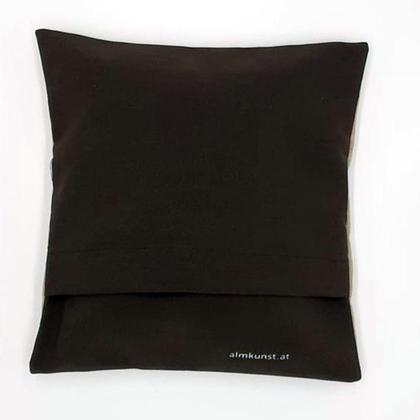 SCHWARZES PFERD AUF BEIGEM STOFF RÜCKSEITE: Dunkelbraun Jedes Produkt wird einzeln und im manuellen Siebdruckverfahren bedruckt. Motiventwurf, Zeichnung, Handdruck, Veredelung und Textilverarbeitung werden ausschließlich im eigenen Atelier hergestellt. Das Füllmaterial besteht aus 100 % frisch gehobelten, feinen und entstaubten Zirbenspänen vom Tischler meines Vertrauens. Das Inlett ist mit einem Reißverschluss versehen, so können Sie Zirbenspäne entfernen, wenn Ihnen das Kissen zu voll wirkt. Es kommt auf jeden Fall prall gefüllt zu Ihnen. Die Kissenhüllen sind aus edlen, robusten und qualitativ hochwertigen Stoffen gefertigt. Alle Bezüge sind waschbar bei 30°. Die Vorderseite: Es handelt sich um ein MICROFASER ALCANTARA-IMITAT, einem kuschelig weichen Microfaser Bezugstoff aus weichem Polyester. Es sind sehr hochwertige Möbelbezugsstoffe und zeichnen sich aus durch: • kuschelig weiche Oberfläche • wasserabweisende Ausrüstung • pflegeleicht / waschbar bei 30°C • Lichtecht • fast knitterfrei Die Rückseite besteht aus einer SWINGTEX BAUMWOLLOPTIK. Sie ist sehr strapazierfähig und zeichnet sich aus durch folgende Eigenschaften: • hohe Lichtechtheit • pflegeleicht / waschbar bei 30°C • fast knitterfrei • wetterfest • wasserabweisend