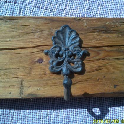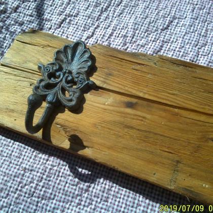 Garderobe aus Altholz mit gusseisernen Kleiderhaken, handgemacht, 106cm x 18cm x 3,5cm