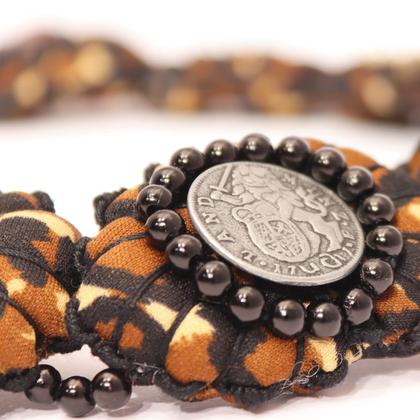 Auch wenn diese "Textiljuwelen" den Namen "Camouflage" tragen. Es gibt keinerlei Grund dieses Unikat zu verstecken. Und die Trägerin dieser Kette hat Tarnung erst recht nicht nötig. IM GEGENTEIL: Zeigen Sie sich der Welt und lassen sie wissen wer Sie sind! Die "Textiljuwelen" glänzen mit Leichtigkeit. Hier geht die Eleganz nicht zu Lasten des Nackens der Trägerin. Die handgenähten Pölsterchen sind federleicht und unterschiedlich verziert & gestaltet.