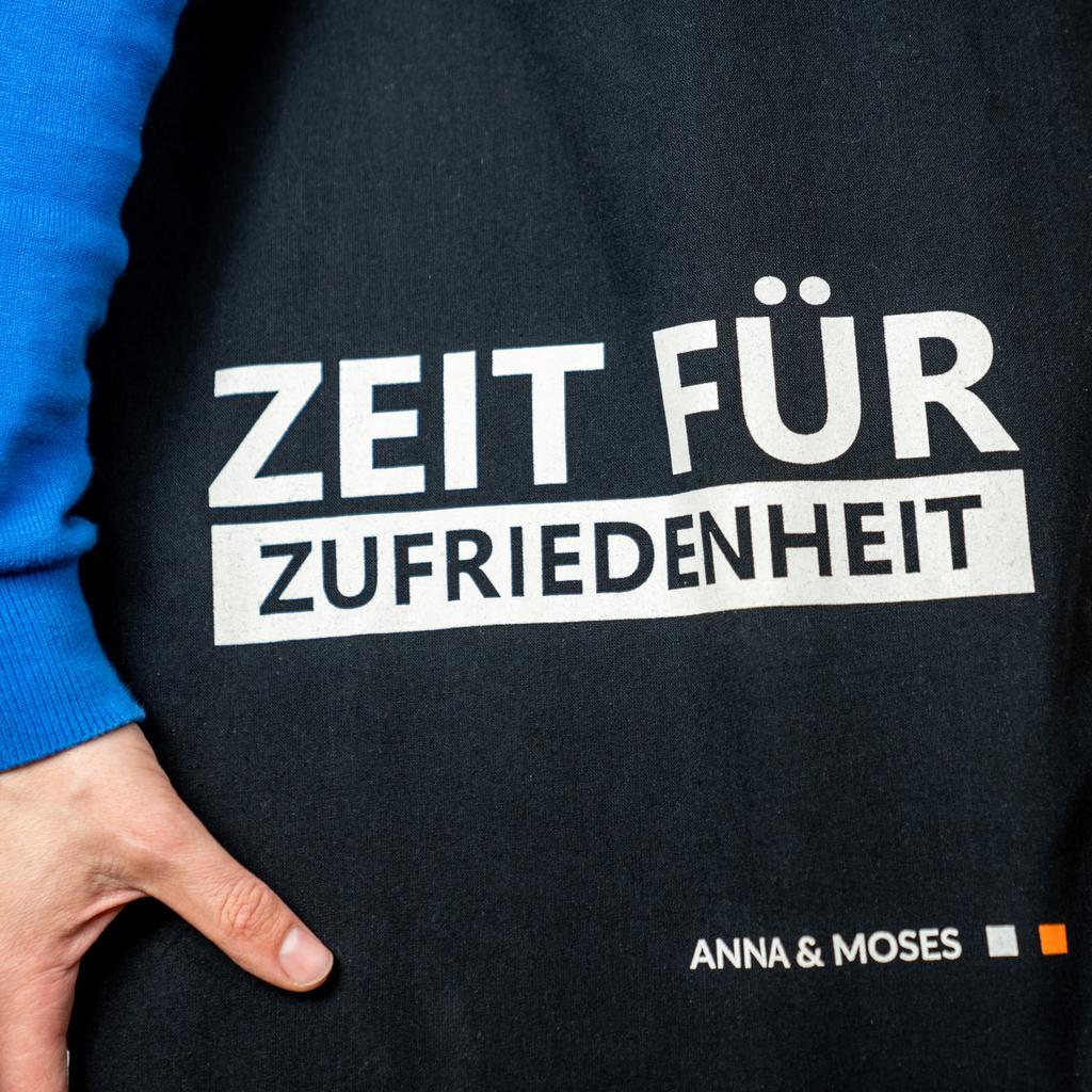 „Zeit für Zufriedenheit“ – Bio-Baumwolltasche