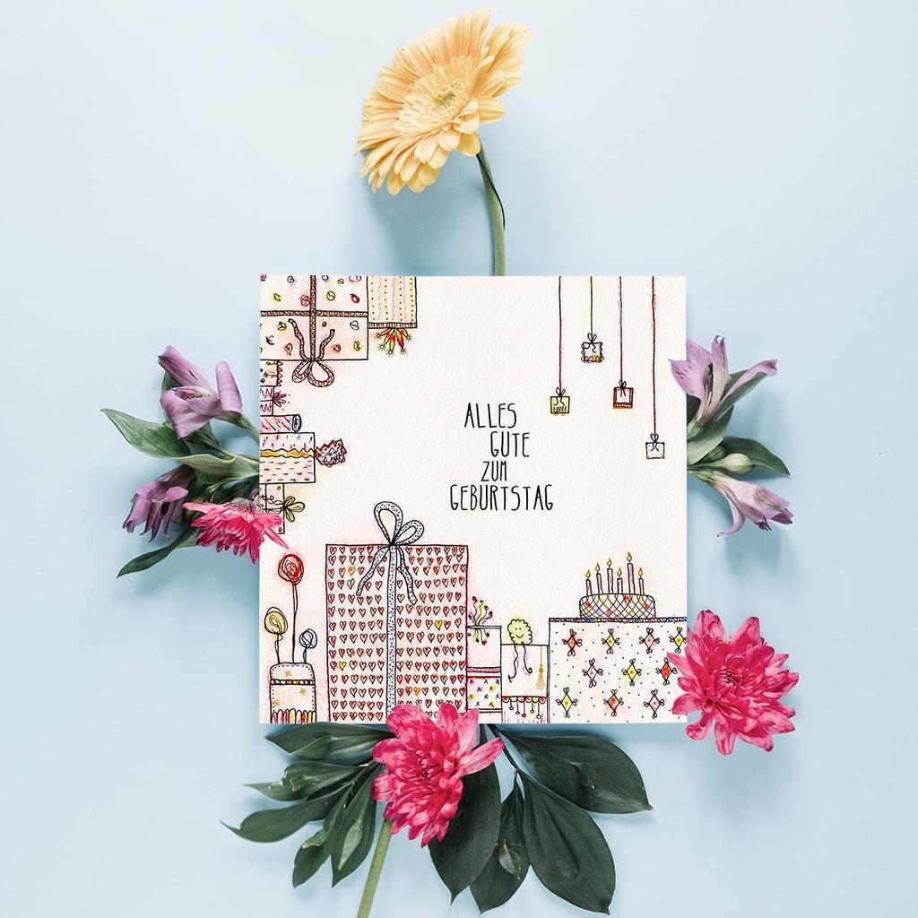 Die ideale Karte zum Geburtstag! Bezaubernd illustrierte Grußkarte als Beilage zum Geburtstagsgeschenk oder einfach zum Versenden per Post. Ausführung: Klappkarte // strukturiertes Naturpapier (Tinteretto Gesso crema) // 250 g // mit Goldfolie und Blindprägung veredelt Format: 14,8 x 14,8 cm inkl. hochwertigem Kuvert aus braunem Naturpapier mit natürlichen Fasereinschlüssen.