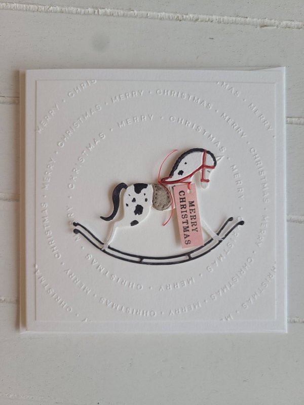 Weihnachtskarte mit Prägung und aquarellierten Schaukelpferd