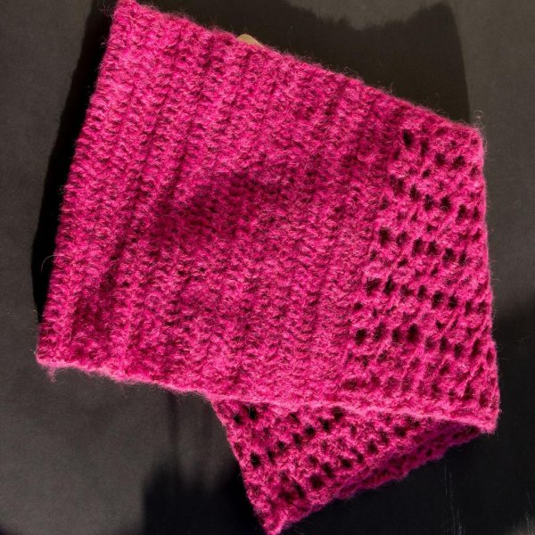 Modischer Loop-Schal mit verschiedenen Mustern aus flauschiger hochwertiger Alpaka-Wolle mit Seidenanteil. Gesamtlänge 125 cm, breite 25 cm.