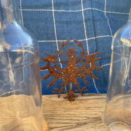 Halter für 2 Schnapsflaschen, mit Tiroladler in Edelrost, gebürstet und geölt, 2 Flaschen (je 100ml) inkludiert,