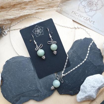 Handgebogener Edelstahldraht mit natürlichen Amazonitperlen (~10mm), mit Ohrhaken aus hochwertigem Edelstahl (nickelfrei/ wasserfest)