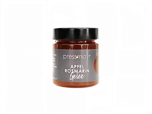 Frisch gepresster, naturtrüber Apfelsaft aus Äpfel von unserer Streuobstwiese sowie frischer Rosmarin aus unserem Folientunnel bilden die Grundlagen für dieses fruchtig-herbe Gelee.