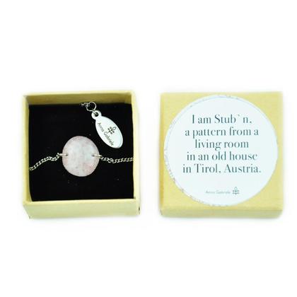 - Armbandanhänger: Fotografie eines Musters von einem Tischtuch in einem Wohnzimmer in einem Haus im Wipptal, Tirol, Österreich, Durchmesser: ca. 1,4 cm