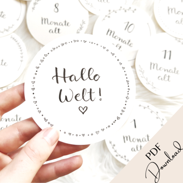 Diese von mir entworfenen Baby-Monatskarten eignen sich ideal um jeden Monat Fotos vom eigenen Baby zu machen, als Geschenk zur Geburt oder zur Babyparty.