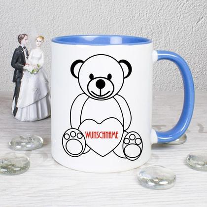Tasse beidseitg bedruckt mit Bär mit Herz und Name