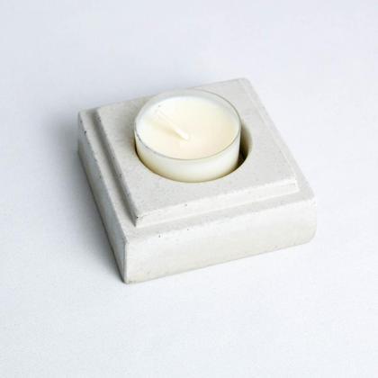 Dieser handgemachte kleine Teelichthalter wurde aus hellgrauem Beton hergestellt.