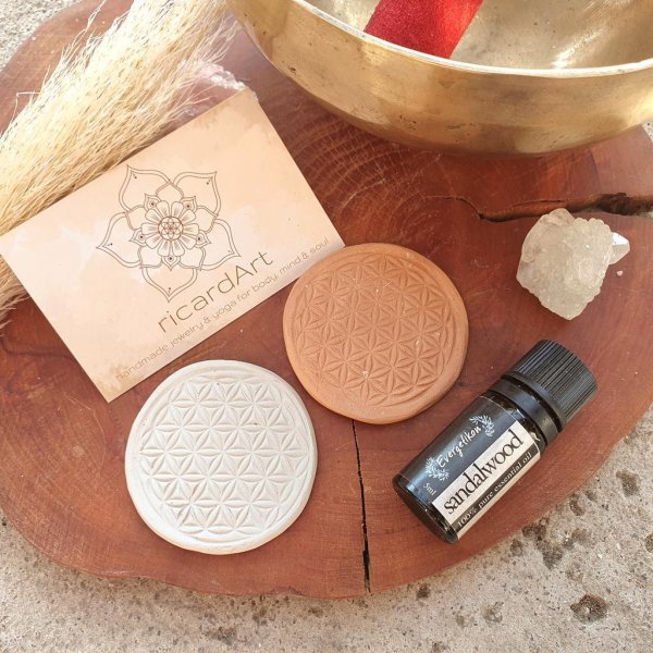 DUFTSTEIN aus Naturton im Lebensblume-Design in naturweiß oder terrakotta.
