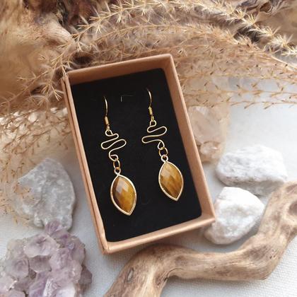 Kraftvolle Ohrringe mit facettierten Edelsteinen nach Wahl (22mm × 12mm), handgebogenem, vergoldetem Edelstahldraht & nickelfreien