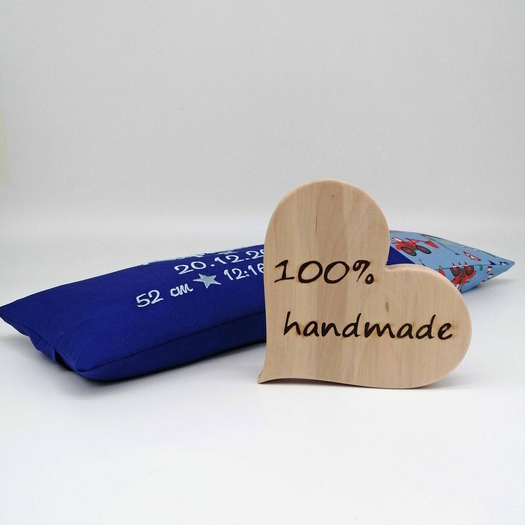 Die Geburtskissen von BagToBe sind das ideale Geschenk zur Geburt, als lange bleibende Erinnerung und auch für Meilenstein-Fotos. Sie werden nach den Maßen des Babys genäht. Innen ist ein Innenkissen, welches mit Reis gefüllt ist. Es besitzt einen Reißverschluss, sodass man den Reis zum Beispiel fürs Waschen herausleeren und einfach wieder einfüllen kann. Der Bezug ist mit einem Hotelverschluss ausgestattet und somit schnell und einfach abnehmbar und ebenfalls waschbar.