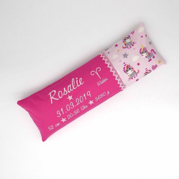 Geburtskissen/Erinnerungskissen Einhörner mit Echtmaßen/Geschenk zur Geburt Baby