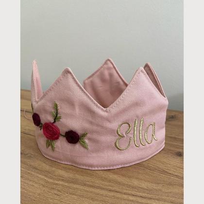 Handbestickte Geburtstagskrone aus 100% Baumwolle, mit Satinband zum individuellen zubinden, somit für kleine aber auch große Köpfchen ;)