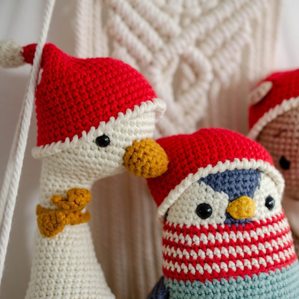 Gehäkelte Weihnachtshaube / Mütze für meine Häkeltiere Bär Floki, Hase Peaches, Hase Hazel/Oskar, Hase Pumpkin, Katze Cleo, Pinguin Humboldt, Dino Bobo und die Gans. Schreibe mir nach der Bestellung für welchen Tier die Weihnachtsmütze gedacht ist.