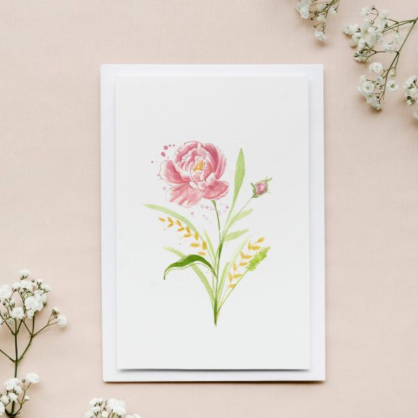 Sie bekommen 1 Stück eines Aquarell-Grußkartes mit einem Druck von meiner handgemalten, rosa Pfingstrose.