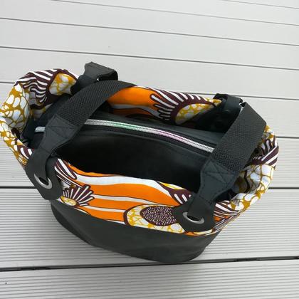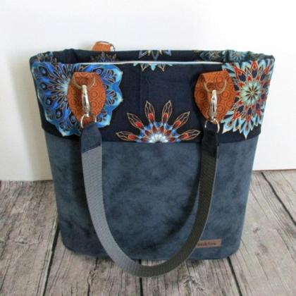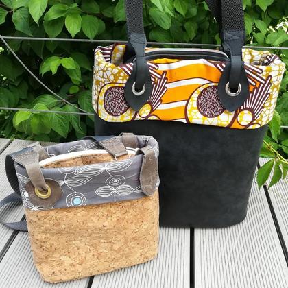 Genäht wird die Tasche aus festen Materialien wie z.B. Kunstleder, Möbelbezugsstoff, Wachstuch.