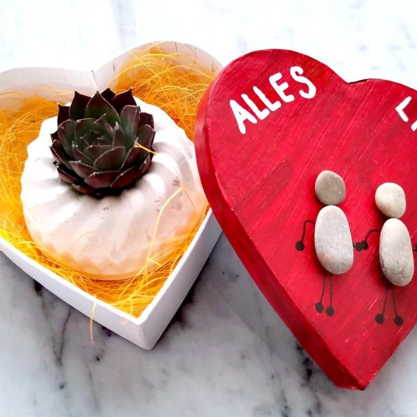 Zum ShopHerzbox mit bepflanztem Guglhupf aus Raysin