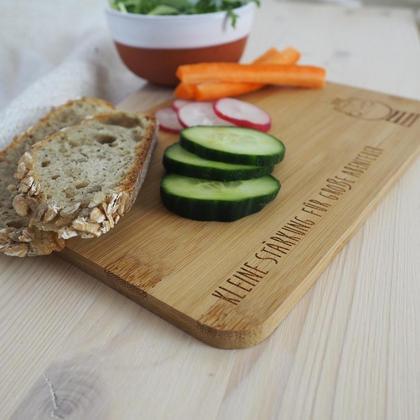 Das Brett ist aus Bambusholz und somit ein nachhaltiges Produkt, plastikfrei und natürlich auch personalisierbar.