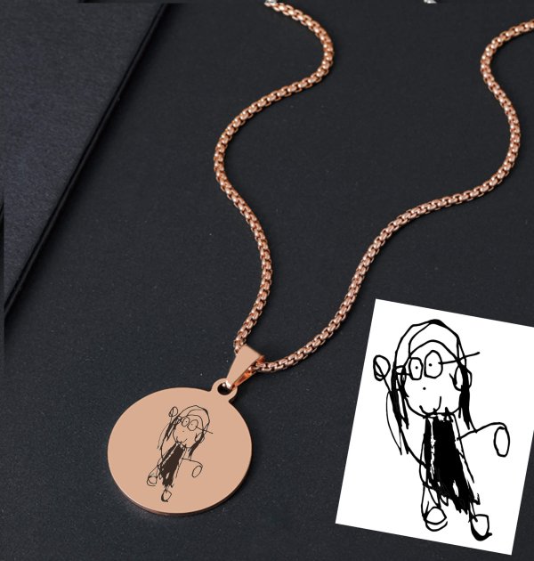 Personalisierte Edelstahl-Halskette – Deine Handzeichnung für immer gelasert