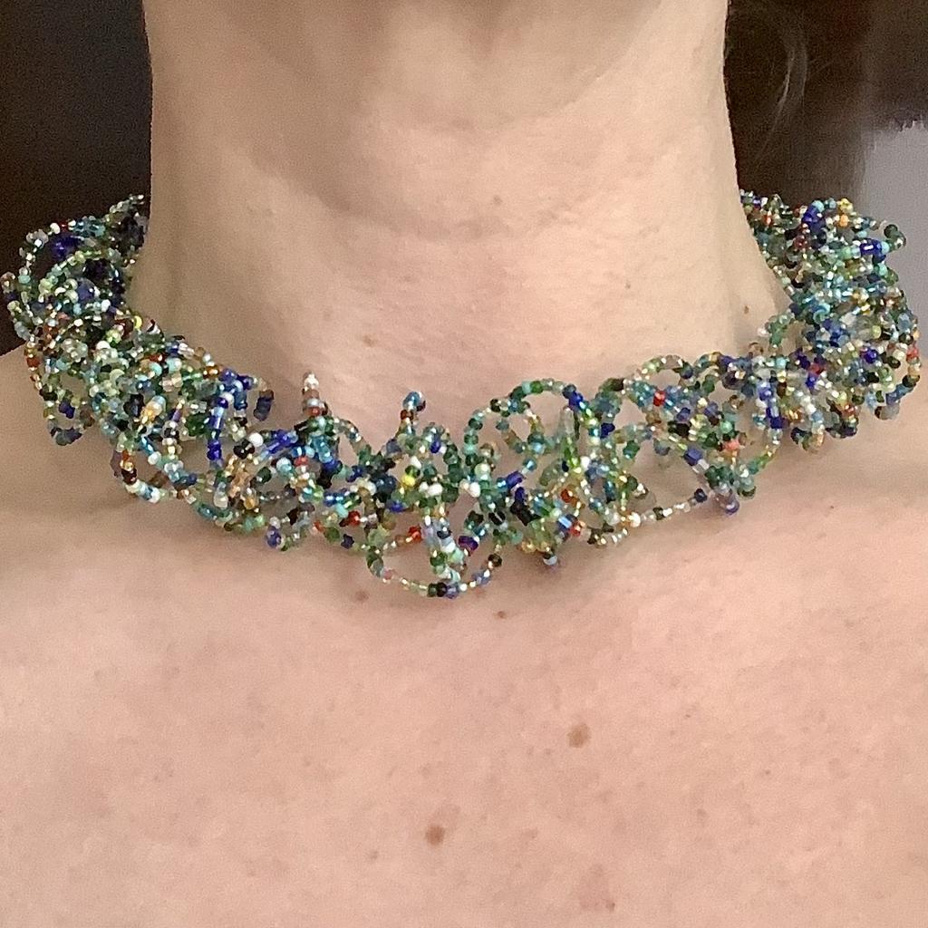 Knautschketten sind flexibel dehnbare Halsketten aus Glasperlen ohne Verschluss. So ergibt sich rundum ein perfektes Bild. Einfach über den Kopf ziehen und wie Haarlocken knautschen-ziehen-formen.