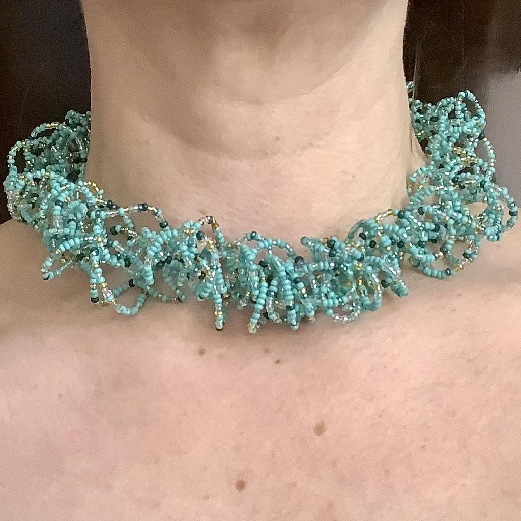 Knautschketten sind flexibel dehnbare Halsketten aus Glasperlen ohne Verschluss. So ergibt sich rundum ein perfektes Bild. Einfach über den Kopf ziehen und wie Haarlocken knautschen-ziehen-formen.