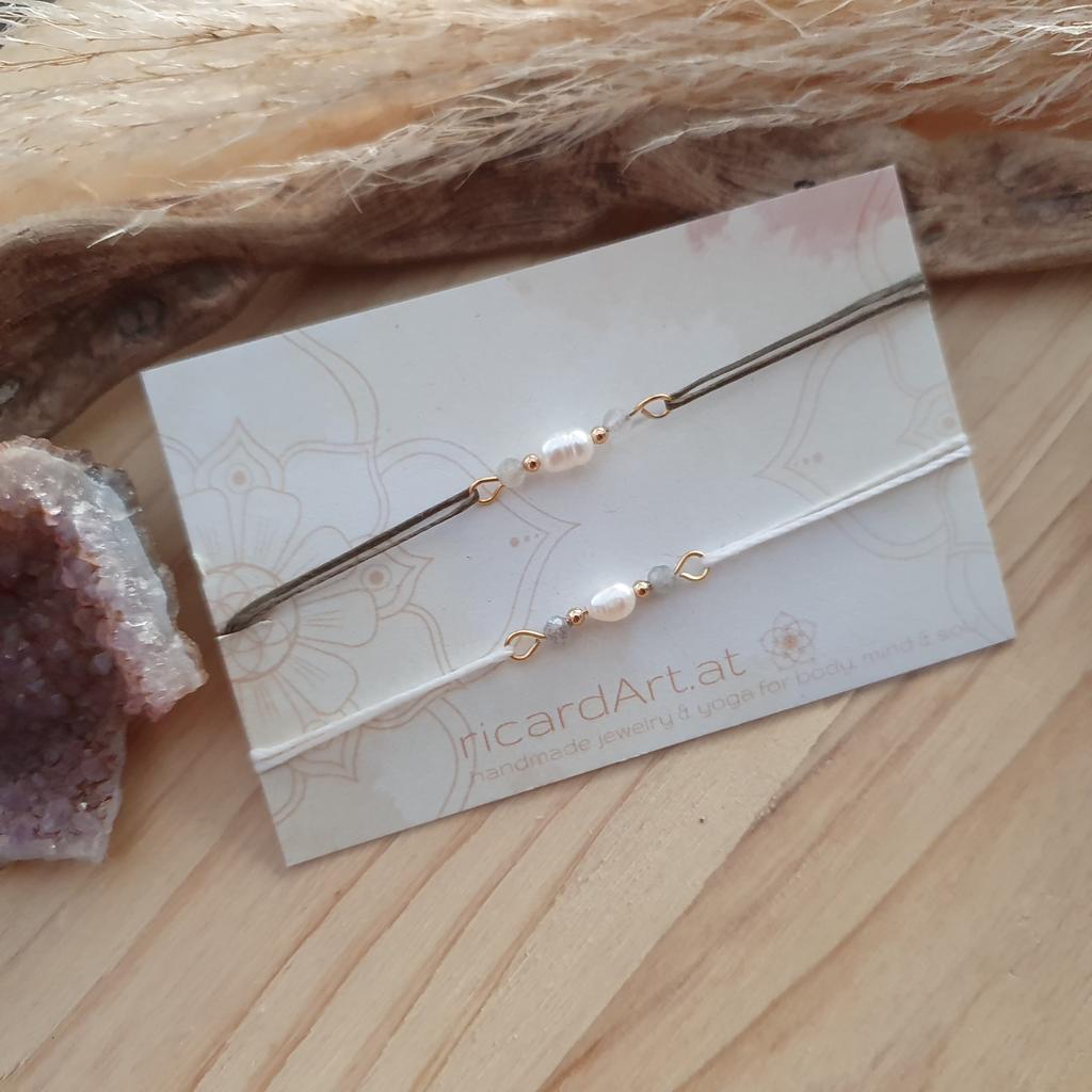 Zarte Armbändchen mit facettierten Labradoritperlen (~3mm) & natürlicher Süßwasserperle