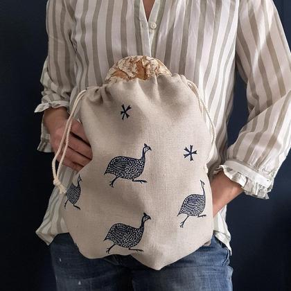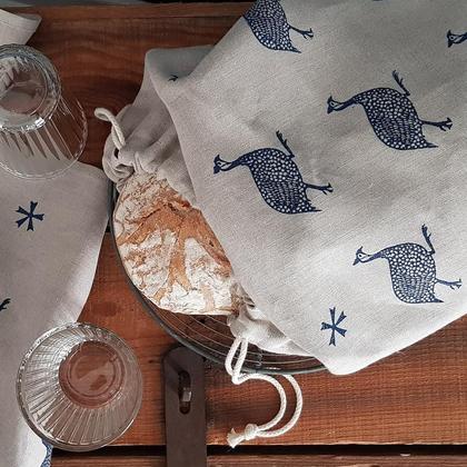 --Ein handbedruckter Brotbeutel-- aus Mühlviertler Leinen. Er ist Dank seiner konservierenden Eigenschaften die beste und bewährteste Aufbewahrunsmöglichkeit für Brot und Gebäck! Leinen ist von Natur aus atmungsaktiv, luftregulierend und bakterienhemmend. Sein robustes Gewebe ist reißfest, antistatisch, flusenarm und schmutzabweisend. Es neutralisiert sogar Gerüche! Brot bleibt daher lange frisch. Es fängt weder an zu schwitzen noch zu schimmeln. Mit dem Zugband aus Baumwolle kann man den Beutel schnell öffnen, gut verschließen und auch aufhängen. Dieses nachhaltige Naturprodukt bleibt ein langlebiger, treuer Begleiter!