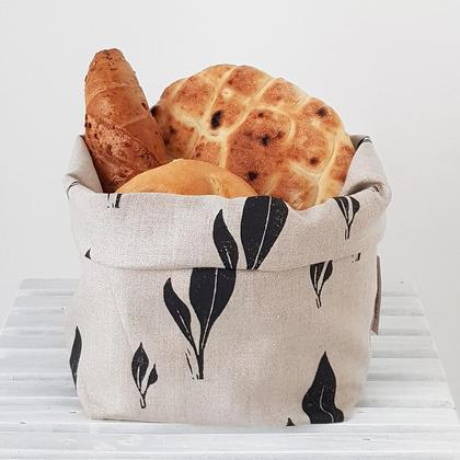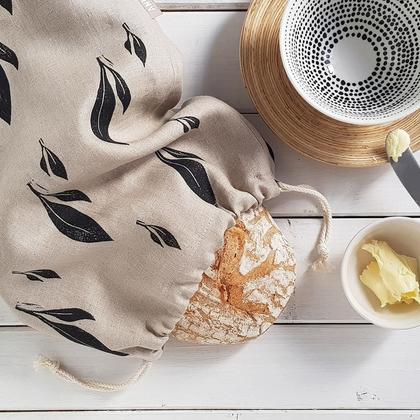 --Ein handbedruckter Brotbeutel-- aus Mühlviertler Leinen. Er ist Dank seiner konservierenden Eigenschaften die beste und bewährteste Aufbewahrunsmöglichkeit für Brot und Gebäck! Leinen ist von Natur aus atmungsaktiv, luftregulierend und bakterienhemmend. Sein robustes Gewebe ist reißfest, antistatisch, flusenarm und schmutzabweisend. Es neutralisiert sogar Gerüche! Brot bleibt daher lange frisch. Es fängt weder an zu schwitzen noch zu schimmeln. Mit dem Zugband aus Baumwolle kann man den Beutel schnell öffnen, gut verschließen und aufhängen. Der Brotbeutel lässt sich auch wunderbar als Brotkörbchen verwenden, da er eine quadratische Bodenfläche hat! Einfach in der Hälfte nach innen bis zum Boden falten und den oberen Rand ringsherum wieder nach außen stülpen. Dieses nachhaltige Naturprodukt bleibt ein langlebiger, treuer Begleiter!