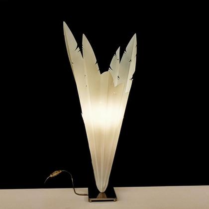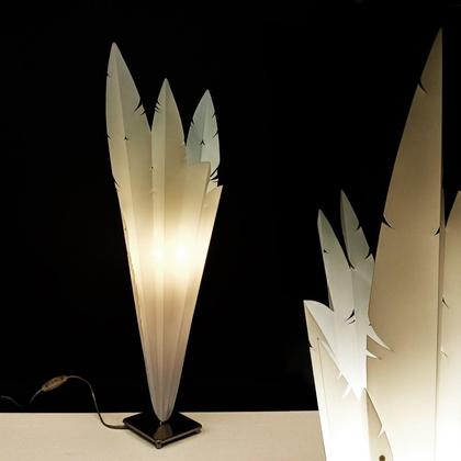 --Materialien:-- pflegeleichte antistatische Recyclingfolie, Edelstahlkorpus, Stahlbasis, Kabelgarnitur transparent mit Schalter.