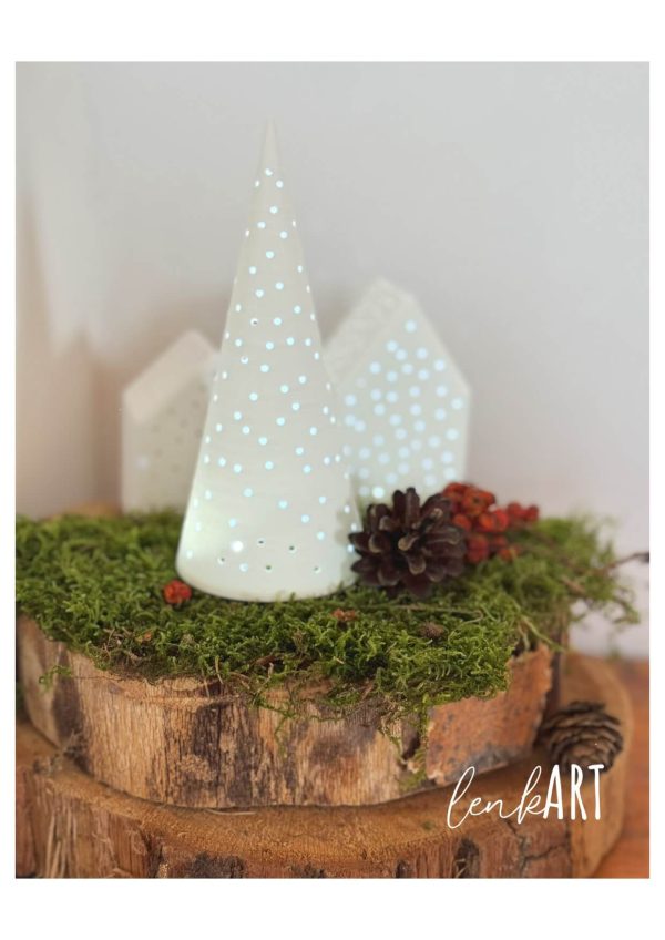 Dieser fein gearbeitete, 3D-gedruckte Baum mit gelöchertem Muster verleiht deiner Wohnung eine gemütliche Weihnachtsatmosphäre. Es lässt sich ein LED-Teelicht darunterstellen, wodurch ein schönes Lichtspiel entsteht.