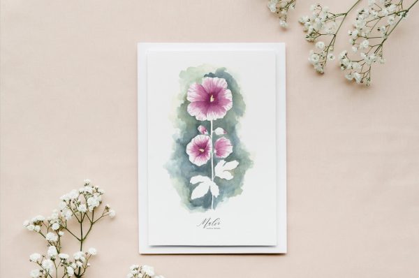 Sie bekommen 1 Stück eines Aquarell-Grußkartes einem Druck meiner handgemalten Malve.