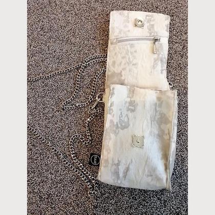Die Tasche ist gefertigt aus lustig gewebten Brokatstoff.