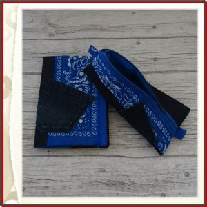 Gefertigt aus einer alten Jeans, kombiniert mit einem Bandanatuch – Stoff.