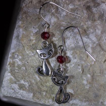 Ein stilvoller Ohrschmuck für alle, die Samtpfoten lieben. Die rote Glasschliffperle gibt dem Schmuckstück einen besonderen Farbtupfer.