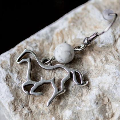 Edelstein-Ohrhänger mit Howlith-Kugel und Pferde-Symbol.