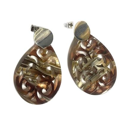 Ohrringe mit Reliefanhängern in Schildpattoptik.