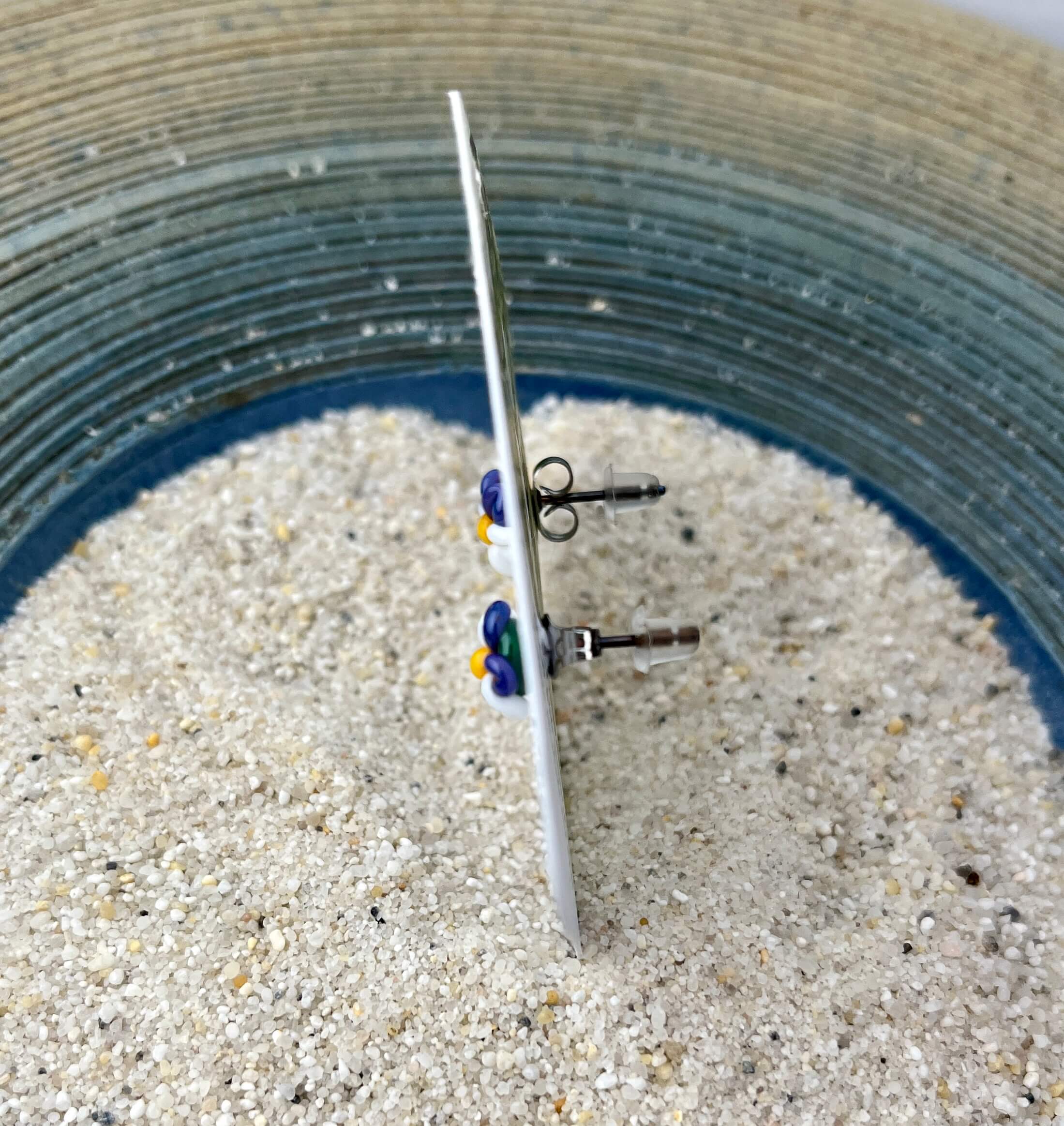 Handgefertigte Ohrstecker Blume weiß gelb