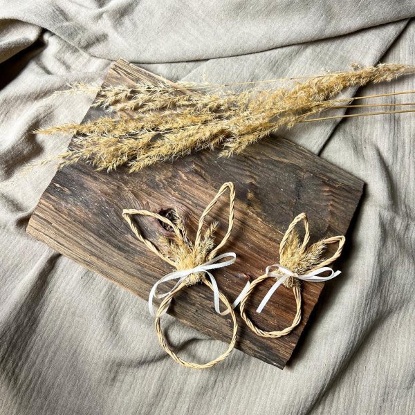 Der Anhänger besteht aus einem filigranen Häschen aus Papierdraht, das mit getrockneten Gräsern und einer kleinen Schleife verziert ist. Er ist leicht und einfach an Osternestern, Zweigen oder anderen dekorativen Elementen aufzuhängen. Die hübschen Farben und das niedliche Design machen ihn zu einem wunderbaren Geschenk für Kinder und Erwachsene gleichermaßen.