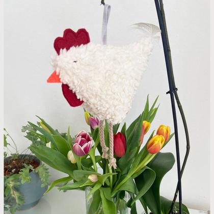 Verschönere dir die Osterzeit mit diesem süssen, handgefertigten Osterhendl aus Plüsch. Du kannst das Hendl mit dem praktischen, eingenähten Band aufhängen oder auch einfach sitzen lassen. Super ist das Hendl auch als kleines Mitbringsel zum Osterbrunch ;)