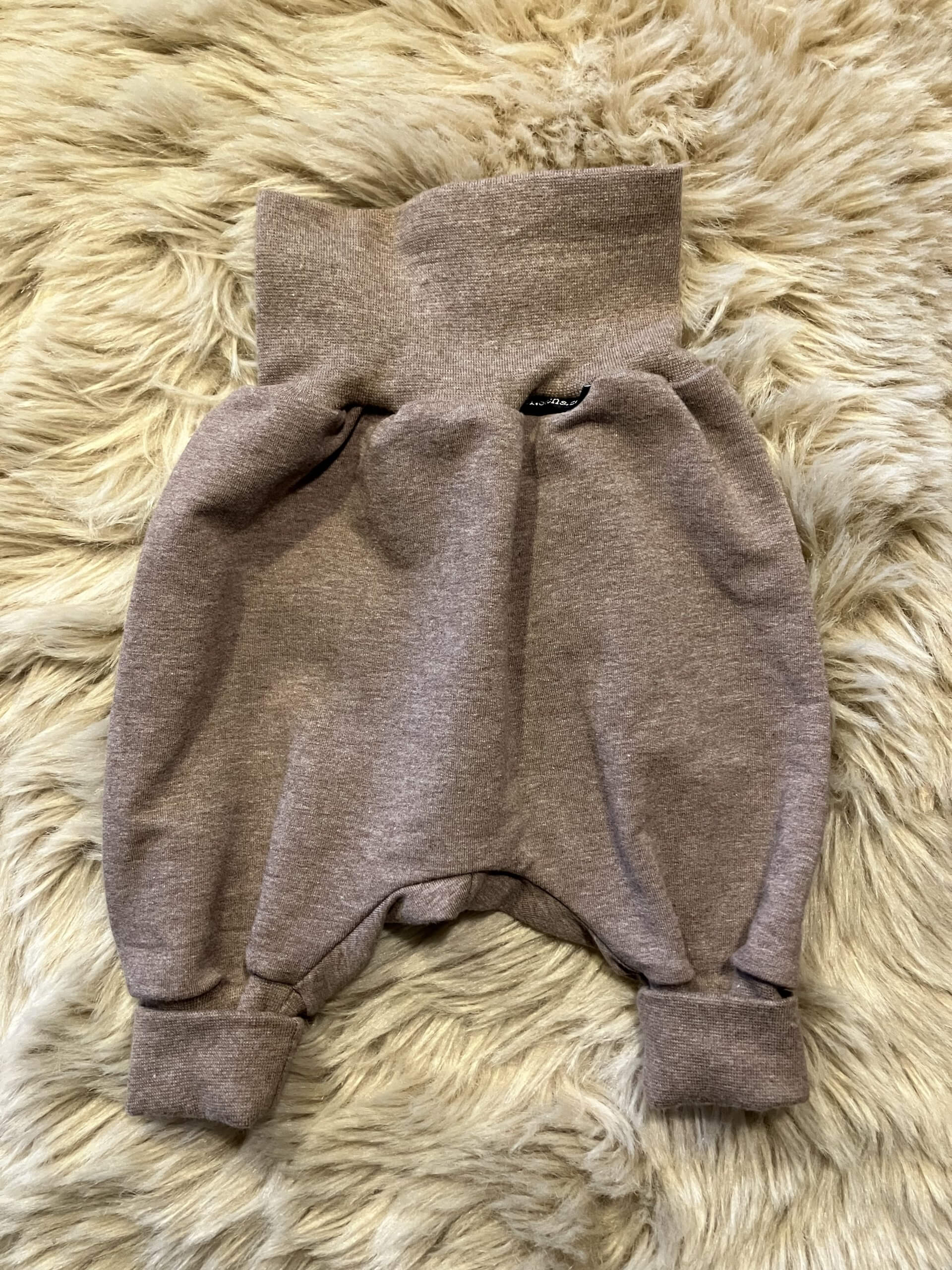Pumphose "schlamm meliert" in der Größe 50/56, genäht aus Baumwollsweatstoff (95% Baumwolle, 5 % Elasthan), über zwei Größen mitwachsend, handmade im Burgenland