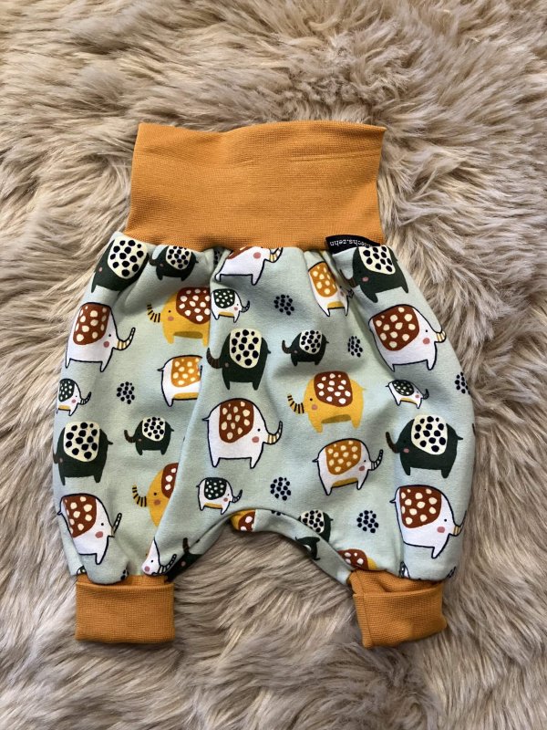 Pumphose "Elefanten" in der Größe 50/56, genäht aus Baumwollsweatstoff (95% Baumwolle, 5 % Elasthan), über zwei Größen mitwachsend, handmade im Burgenland