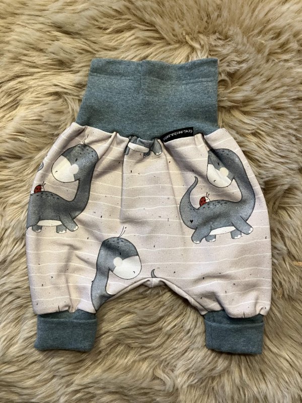 Pumphose "Dino" in der Größe 50/56, genäht aus Baumwollsweatstoff (95% Baumwolle, 5 % Elasthan), über zwei Größen mitwachsend, handmade im Burgenland
