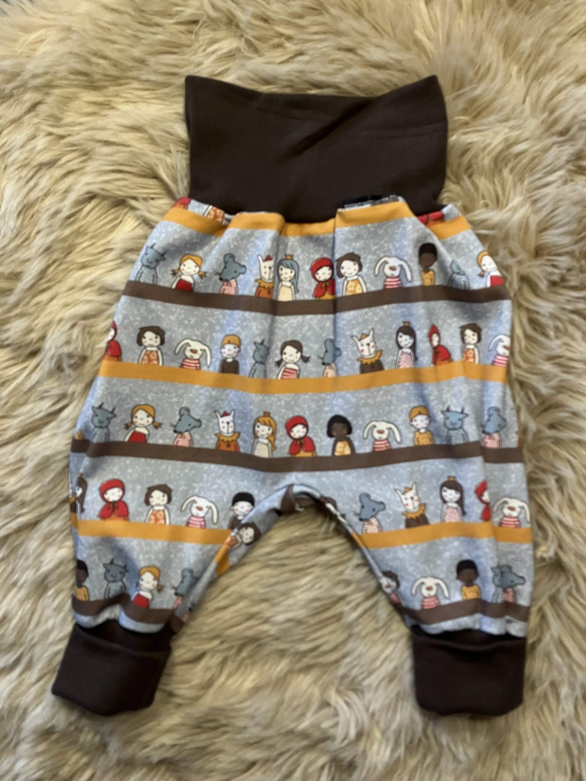 Pumphose "People dunkelbraun" in der Größe 74/80, genäht aus Baumwollsweatstoff (95% Baumwolle, 5 % Elasthan), über zwei Größen mitwachsend, handmade im Burgenland