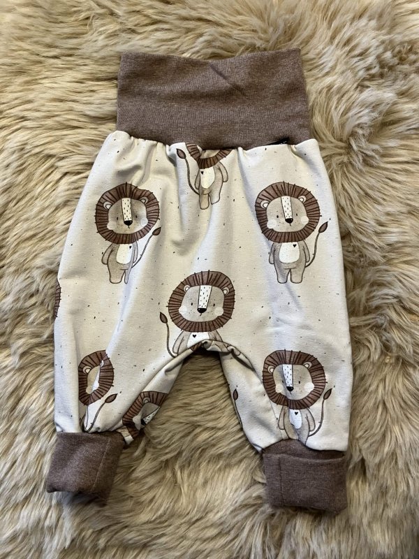 Pumphose "Löwe" in der Größe 74/80, genäht aus Bio-Baumwollsweatstoff (95% Baumwolle, 5 % Elasthan), über zwei Größen mitwachsend, handmade im Burgenland